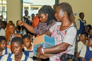 In a show of compassion and dedication to the welfare of young girls, the OMO Foundation distributed cartons of sanitary pads, writing materials, and other educational supplies to the students.